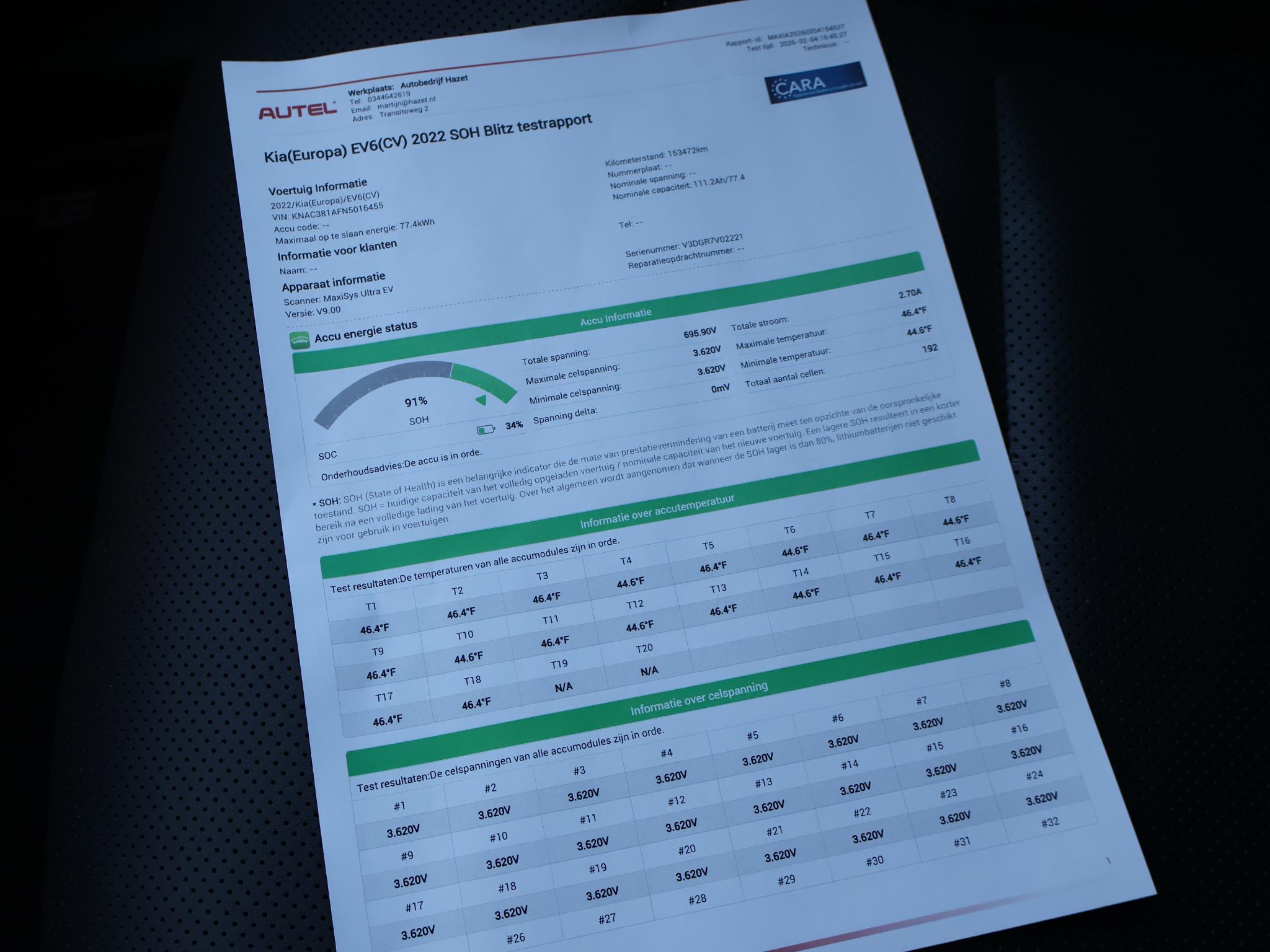 Origineel Nederlandse en 1e eigenaar auto, SOH waarde 91%, Gravity Blue metallic met zwart leder interieur, Plus uitvoering, Super compleet met Meridian premium sound, Stoelverwarming voor + achterin, Stuurwielverwarming, Stoelventilatie, Achteruitrijcamera, Navigatie breedbeeld met Apple Carplay en Android Auto en DAB radio, Elektrische stoelverstelling met geheugen, Privacy glass, Full LED koplampen en achterlichten, Adaptive cruise control met actieve lijnassistentie, 19 inch lichtmetalen velgen, Meer informatieAlgemene informatieMerk: KiaModel: EV6 Type: PLUS 77.4 kWh + MERIDIAN | LEDER | MEMORY | SFEER Modelreeks: 2021 - 2024 Typenummer: ASW5ZHZ7ZGG769 Technische informatieKoppel: 350 NmAandrijvingActieradius: 528 kmAsconfiguratieAandrijving: AchterwielaandrijvingPrestatiesAcceleratie (0-100): 7,3 sTopsnelheid: 185 km/u MatenAfmetingen (LxB): 468 x 188 cmWielbasis: 290 cm GewichtenLedig gewicht: 1.885 kgLaadvermogen: 540 kg Max. trekgewicht: 1.600 kg (ongeremd 750 kg) AccuAccu: 77 kWhAccu laden: 11 kW, compleet vol in 8 uur Accu snelladen: 240 kW Milieu en verbruikGemiddeld elektriciteitsverbruik: 16,5 kWh/100kmCO₂-uitstoot (WLTP): 0 g/km Financiële informatieMotorrijtuigenbelasting: € 176 - € 193 per kwartaalBeschikbare afleverpakketten:[list][*]Basispakket (inbegrepen):Vloeistofcheck Kenteken tenaamstelling Schoonmaken [*]Servicepakket 1 (€ 495 meerprijs): Olie servicebeurt incl. filter Schoonmaken Dit afleverpakket bevat (in plaats van afleverpakket "Basispakket"): Hazet garantie 3 maanden (3 maanden garantie); Nieuwe APK[*]Servicepakket 2 (€ 695 meerprijs): Onderhoudsbeurt volgens schema Schoonmaken Dit afleverpakket bevat (in plaats van afleverpakket "Basispakket"): Hazet garantie 6 maanden (6 maanden garantie, 10.000 km garantie); Nieuwe APK[*]Servicepakket 3 (€ 995 meerprijs): Onderhoudsbeurt volgens schema Poetsen, polijsten en interieur reiniging Dit afleverpakket bevat (in plaats van afleverpakket "Basispakket"): BOVAG garantie (12 maanden); Nieuwe APK[/list] ProductveiligheidEU verantwoordelijke: Kia Motors Nederland Postbus 83 3620 AB Breukelen, NL 0346-753800 www.kia.nl info@kia-autolease.nlOverige informatieMinimale laadtijd AC vanaf: 0Minimale laadtijd AC tot: 100 Minimale laadtijd DC vanaf: 10 Minimale laadtijd DC tot: 80 Minimale laadtijd DC van 10% tot 80%: 18 min |